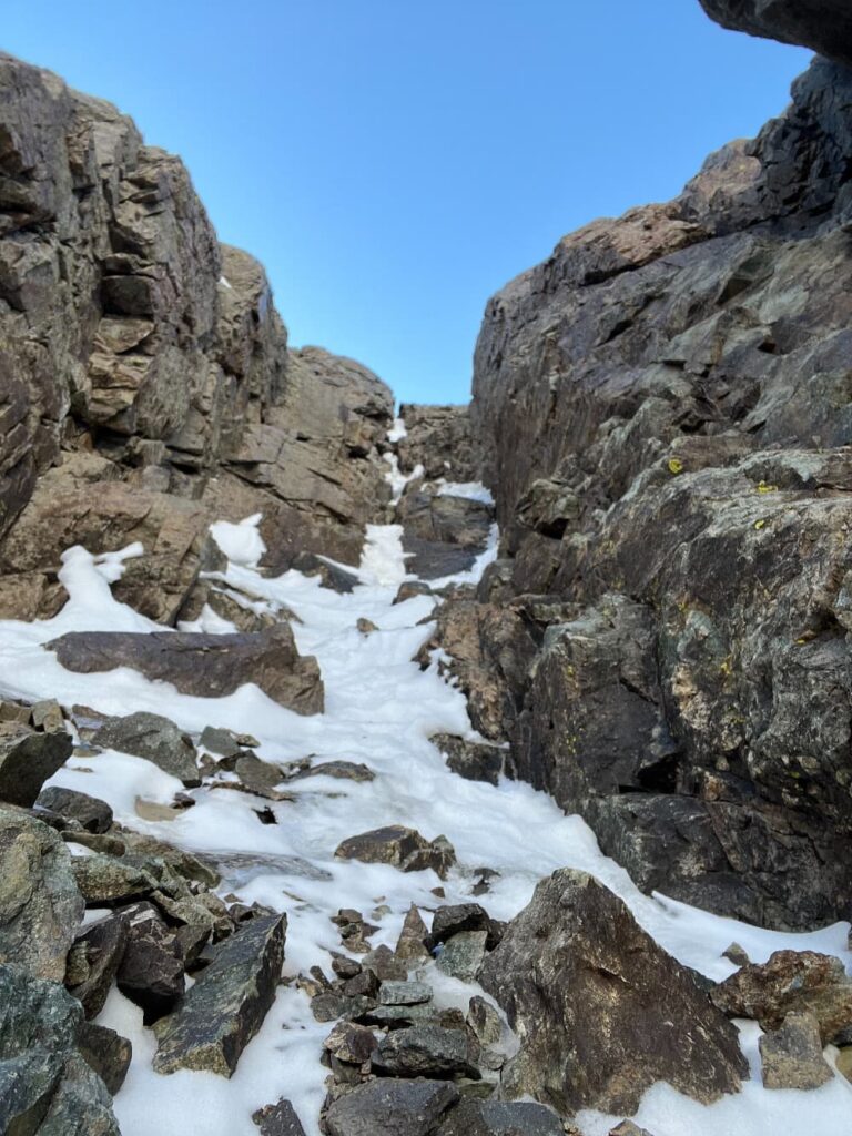 No había ni el mas mínimo lugar plano para sentarse o en otro caso para un vivac, siempre vertical. Cada vez que creía llegar a la cumbre, aparecía frente a mi otra cresta de rocas del tipo falsa cumbre, muy agotador, pero lo estaba pasando genial, especialmente porque me sentía en un flow exquisito, sin dudar ni en lo más mínimo de mis decisiones, ademàs el pronostico del tiempo había acertado, estaba soleado, sin viento, aunque frio pero como estuve en constante movimiento, nunca sentí frio.
