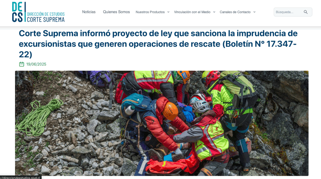 En este sentido, el presente proyecto de ley en Chile busca regular criterios de imprudencia temeraria en la que podrían incurrir excursionistas que posteriormente deban ser buscados o rescatados por equipos de rescate, y fijar una multa, que sería consecuencia de este actuar imprudente, y la forma de hacerla efectiva por parte de los Juzgados de Policía Local.